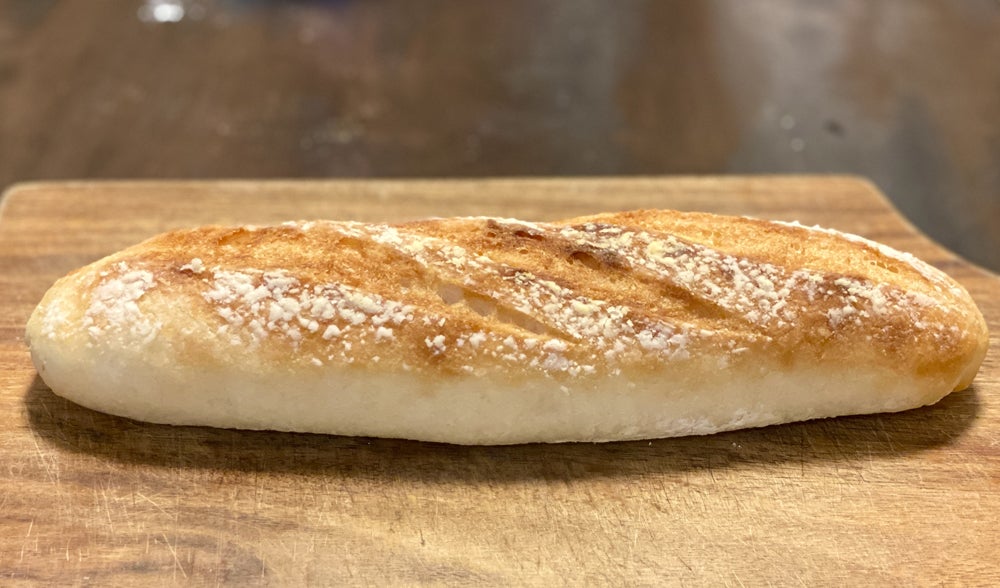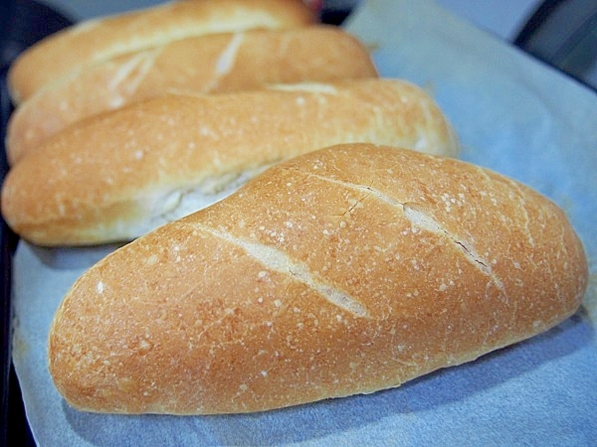 ハード系の固さが苦手な人でも食べたら納得!『米粉入りソフトフランス』 作り方動画▶︎YouTube🎥 『大野 パン バインミー』検索🔎@yurina.oonoのリンクから4本分 16㎝ー--------------- -準強力粉 bread flour 235g代用:強力粉188+薄力粉47g。