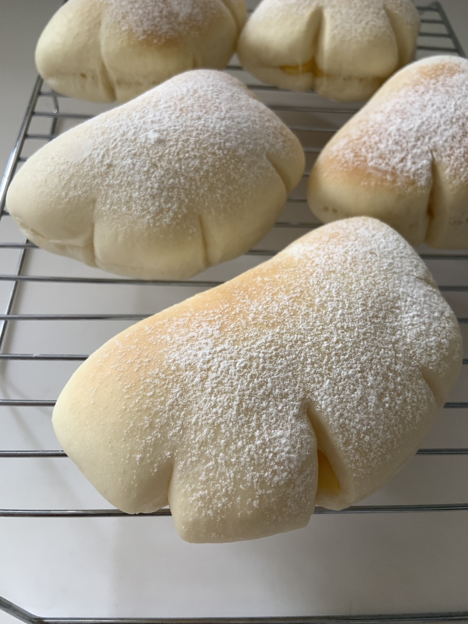 白いクリームパンレンジで作るカスタードと白パンを合わせたとろける食感の新しいクリームパン。レンジでつくれる簡単さが作りたくなりますね!形もかわいくて、ついつい小腹がすいたときの為に持ち歩いてしまいそう、、、🐾ブレッド基礎クラスリニューアルで学べ。