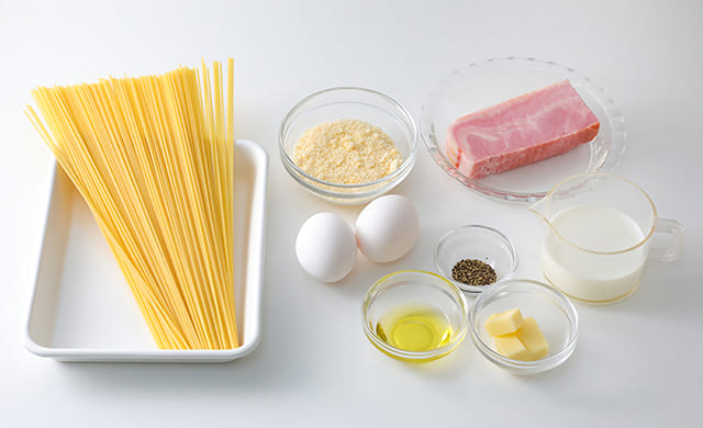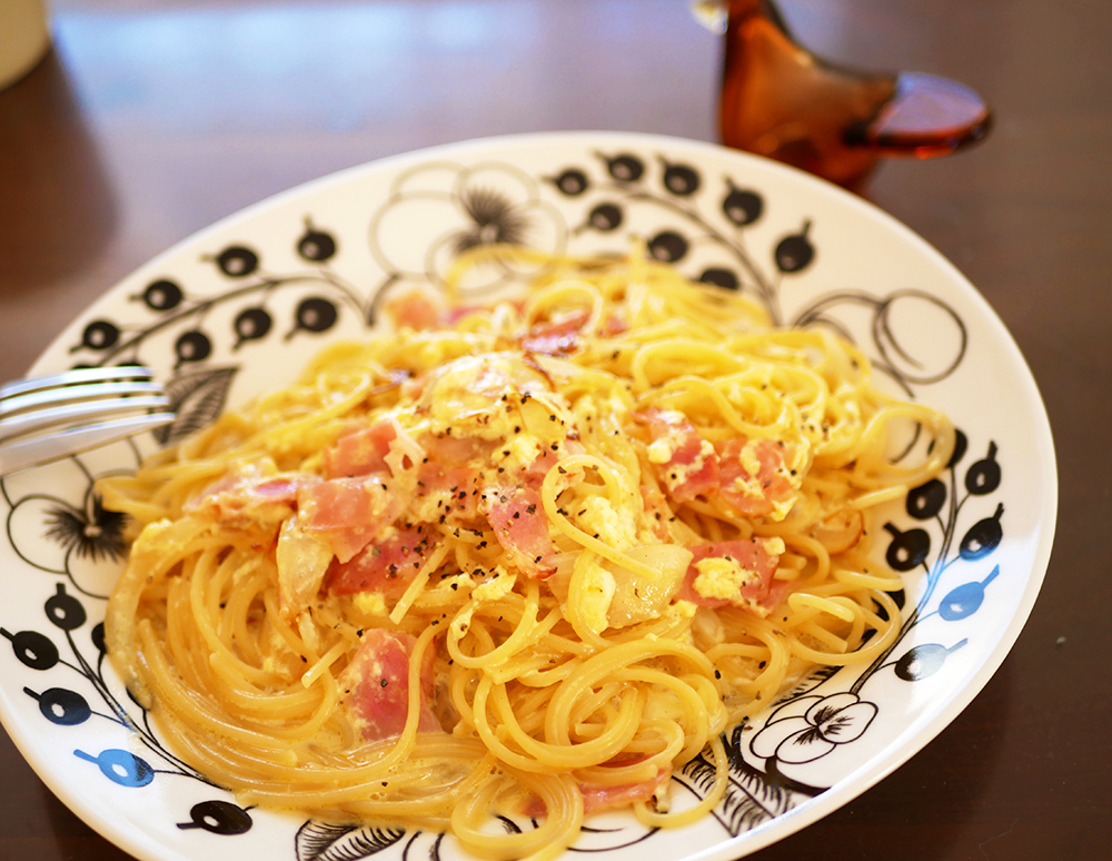 牛乳・全卵で作るカルボナーラレシピ 簡単なのに味わいは本格的。