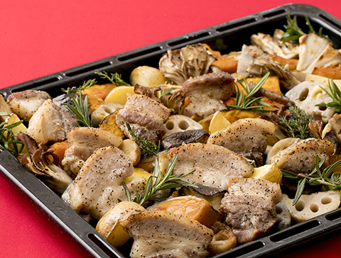豚バラブロックの岩塩焼き 石窯おまかせ焼き東芝ライフスタイル株式会社。