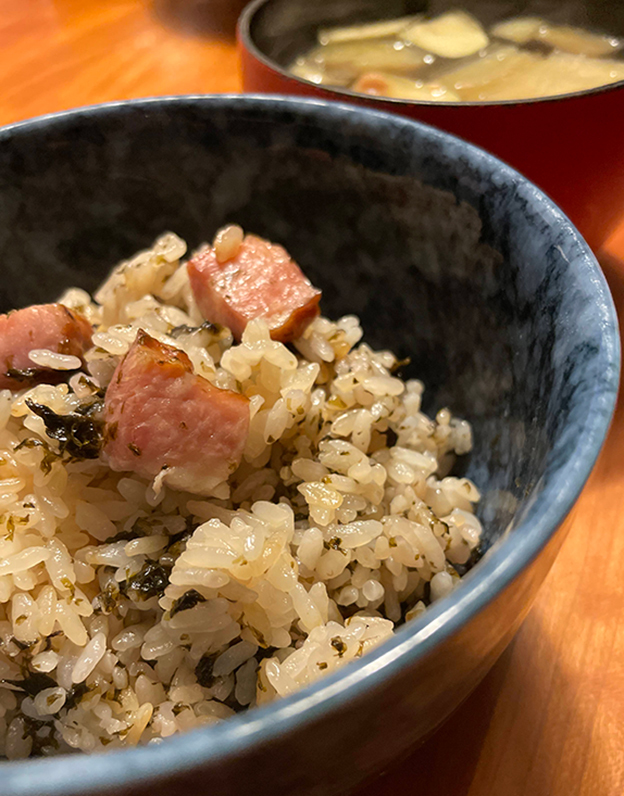 「家事ヤロウ」海苔とベーコンの炊き込みご飯。
