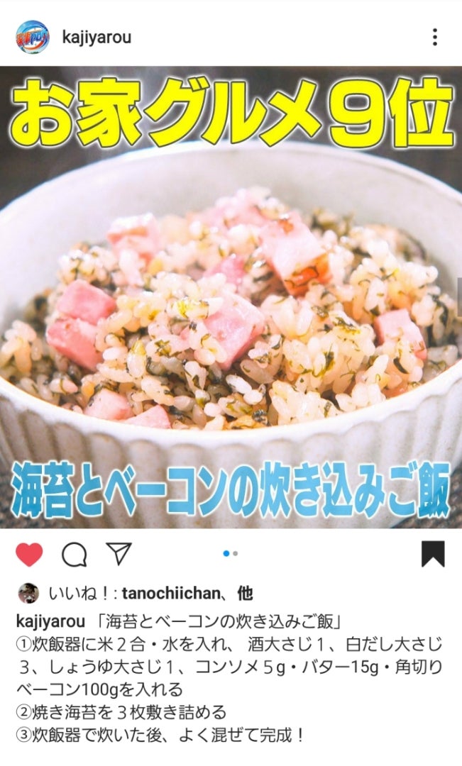 家事ヤロウ でやっていた海苔とベーコンの炊き込みごはんを試してみた!料理のレシピや作り方暮らしニスタ。