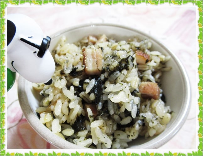 海苔とベーコンの炊き込みご飯作ってみた!家事ヤロウ! - イギーとポル 福岡グルメ。