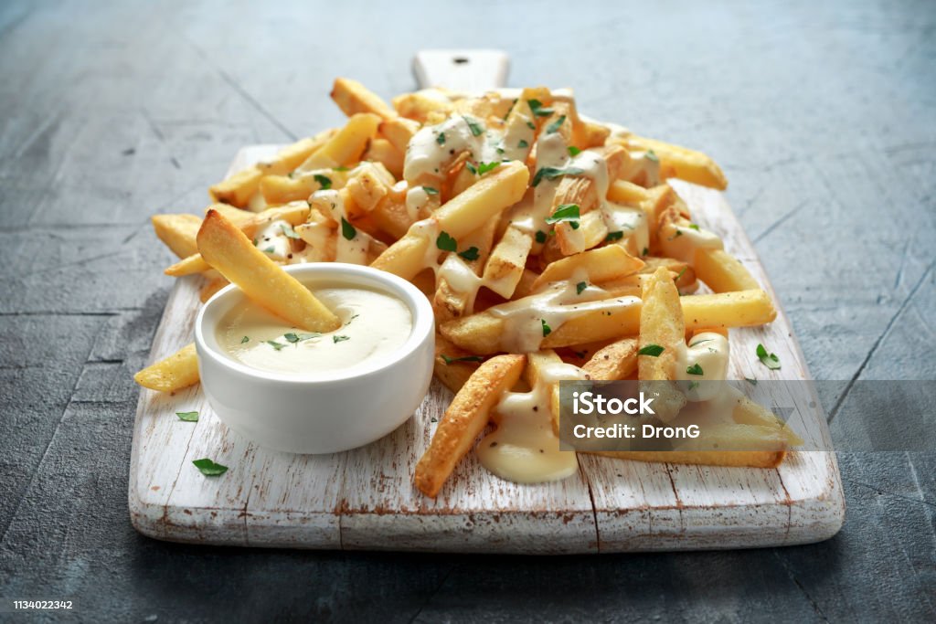 自家製ポテトフライチーズソースホワイトの木製ボード - おやつのストックフォトや画像を多数ご用意 - おやつ, イギリス, オーガニック -iStock。