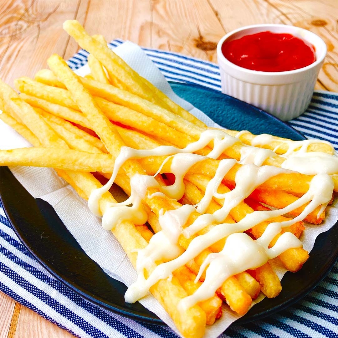 カリッとほっくほく♡クリーミーチーズソースでフライドポテト。