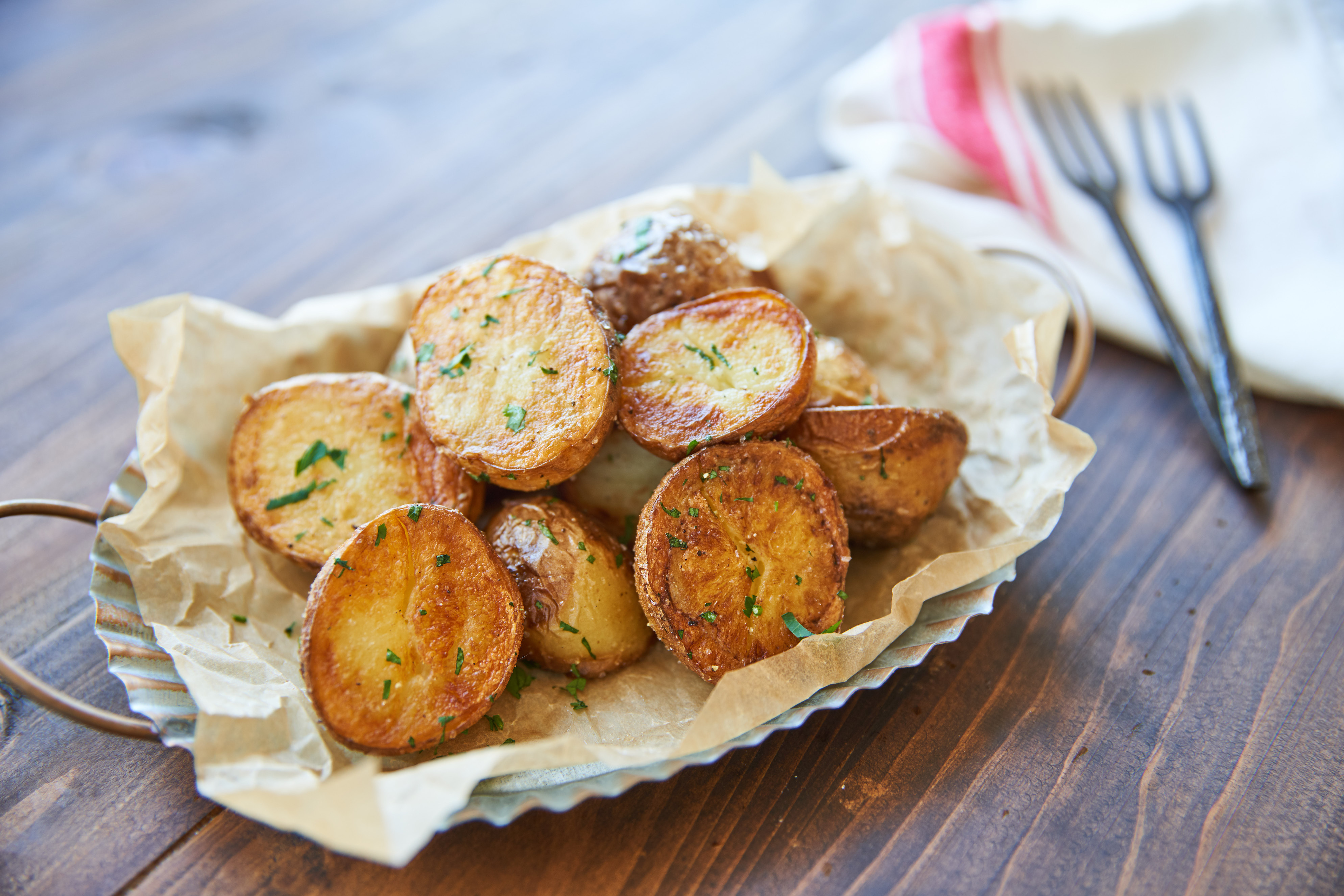 レンジで時短&ホクホク! 揚げ焼きガーリックポテト。