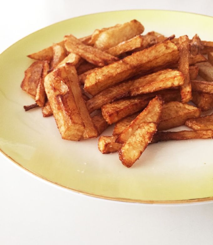 料理家ハットリミドリアトリエ月 文京区千石フライドポテト じゃがいも、長芋皮付きのまま 素揚げして熱いうちに塩と青のりふるだけで最高♡おつまみシンプル料理簡単レシピじゃがいも長芋Instagram。