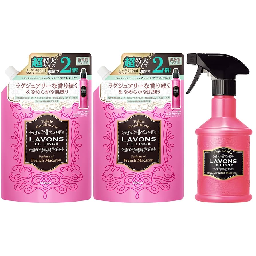 Amazonセット買い ラボンLavons柔軟剤詰替え フレンチマカロンの香り大容量 2個 & ファブリックミスト フレンチマカロンの香り370mlラボン Lavons液体柔軟剤。