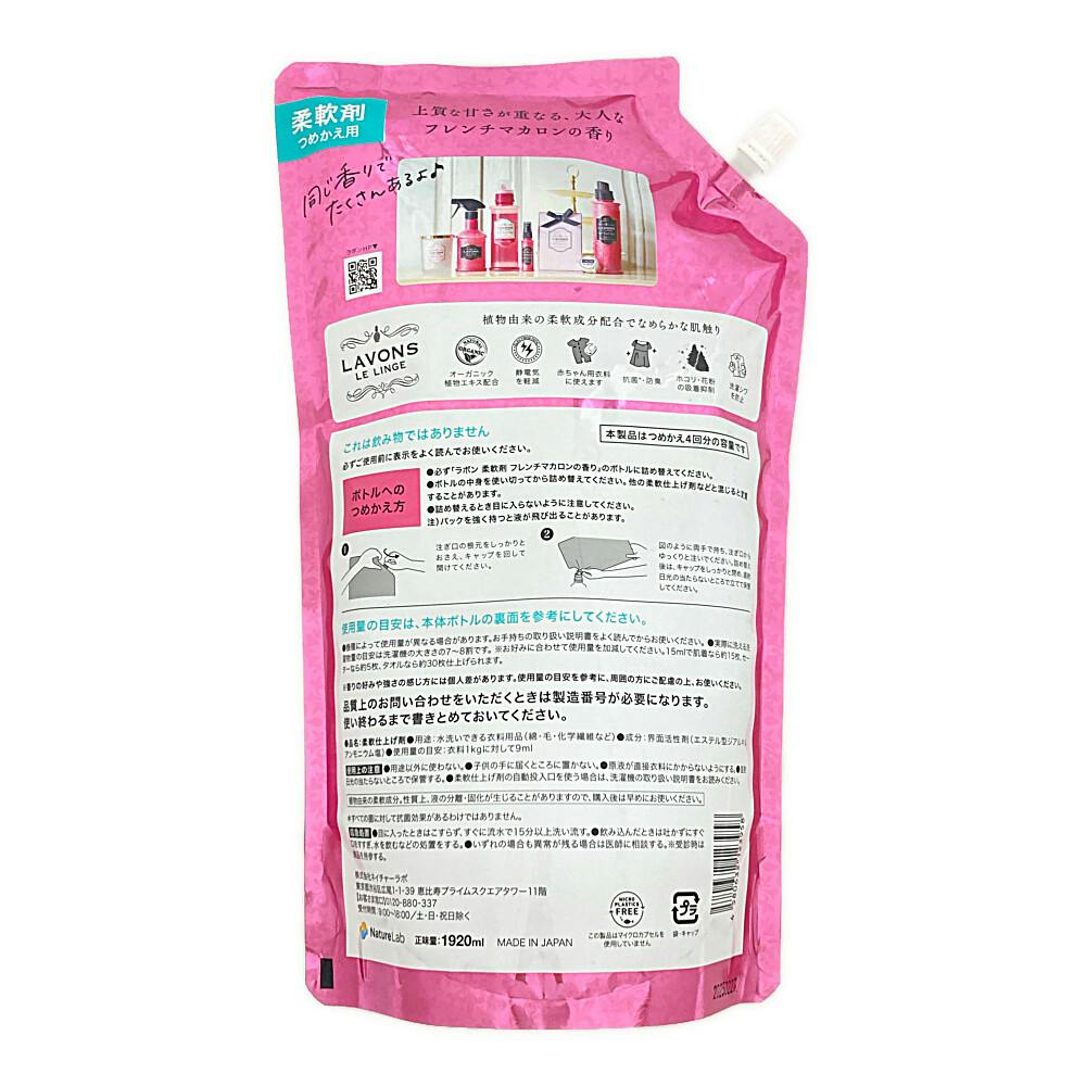 ラボン 柔軟剤 フレンチマカロンの香り 詰め替え 4倍サイズ1920ml。