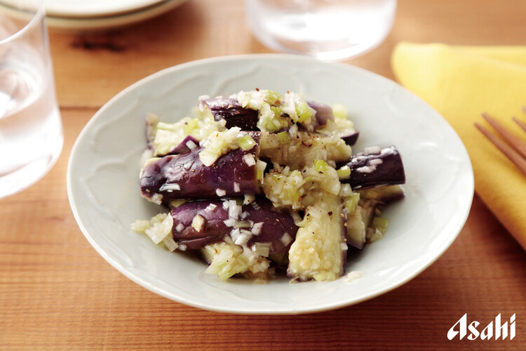 ナスのネギ塩ダレ和え~簡単3stepおつまみ~。
