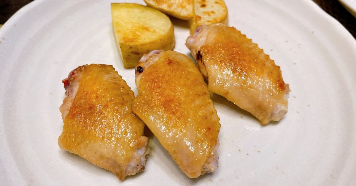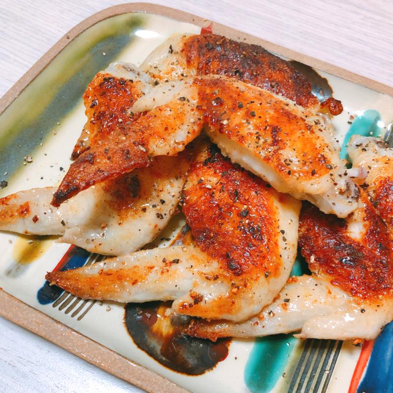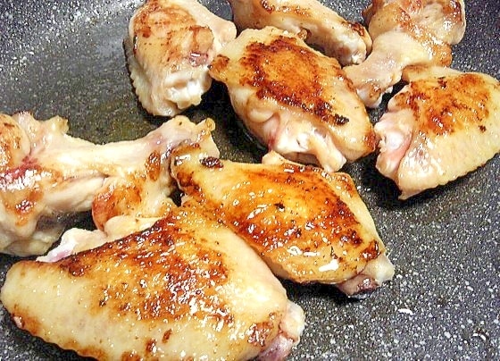 手羽中のうま塩焼き 串なし・フライパン焼き鳥。
