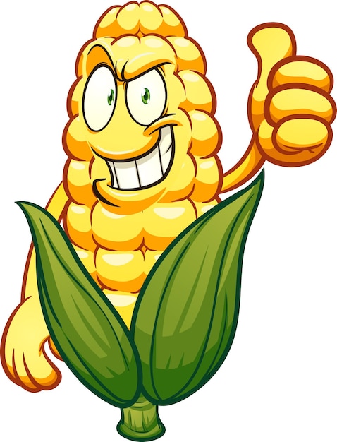 とうもろこし漫画のキャラクター、親指を立てるイラストPremiumベクトル素材。
