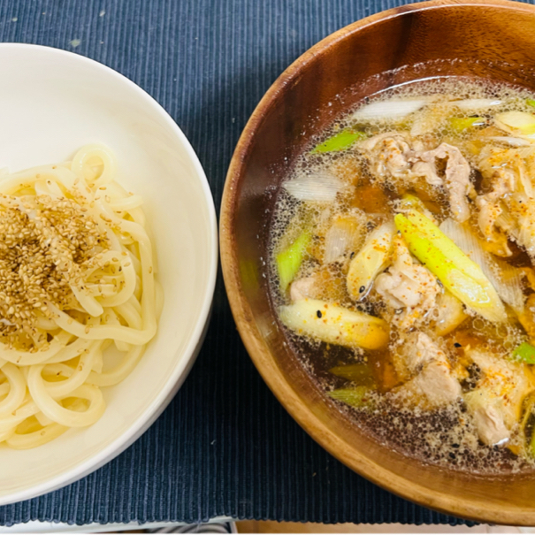 甘辛お肉に優しいつゆが絶妙♡年越しにも🥢◎✨めんつゆで簡単に作った 優しい味付けのつゆには 濃いめの甘辛だれが絡んだお肉がとってもよく合います ^^ ︎👍🏻 ̖́- 麺は、うどんでもそばでもお好みで お作りいただけます♪♪ 簡単にできるのでお休み中のお昼ご飯や。