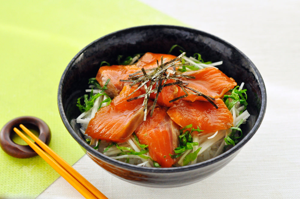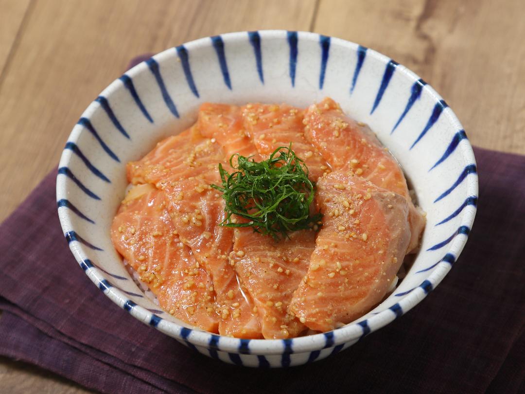 無添加国産しょうゆのたれがポイント◎サーモンの漬け丼スマイルレシピイチビキ 公式サイト名古屋のみそ・しょうゆ・つゆメーカ。