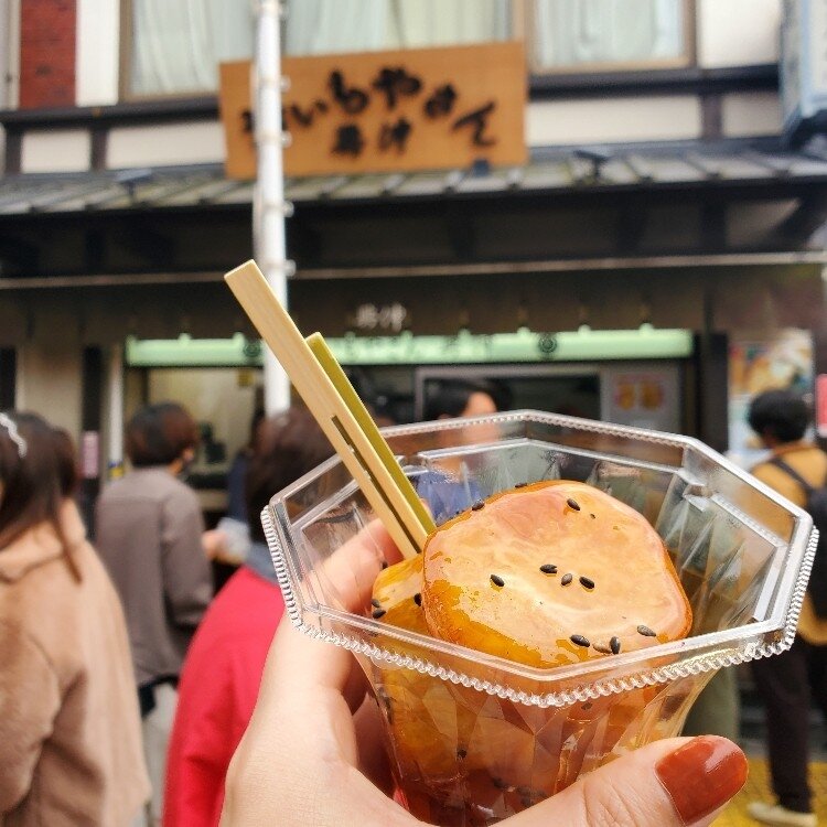 浅草『おいもやさん興伸』で大学いもを味わう!甘くてホクホクな食べ歩きの定番東京一人旅男子。