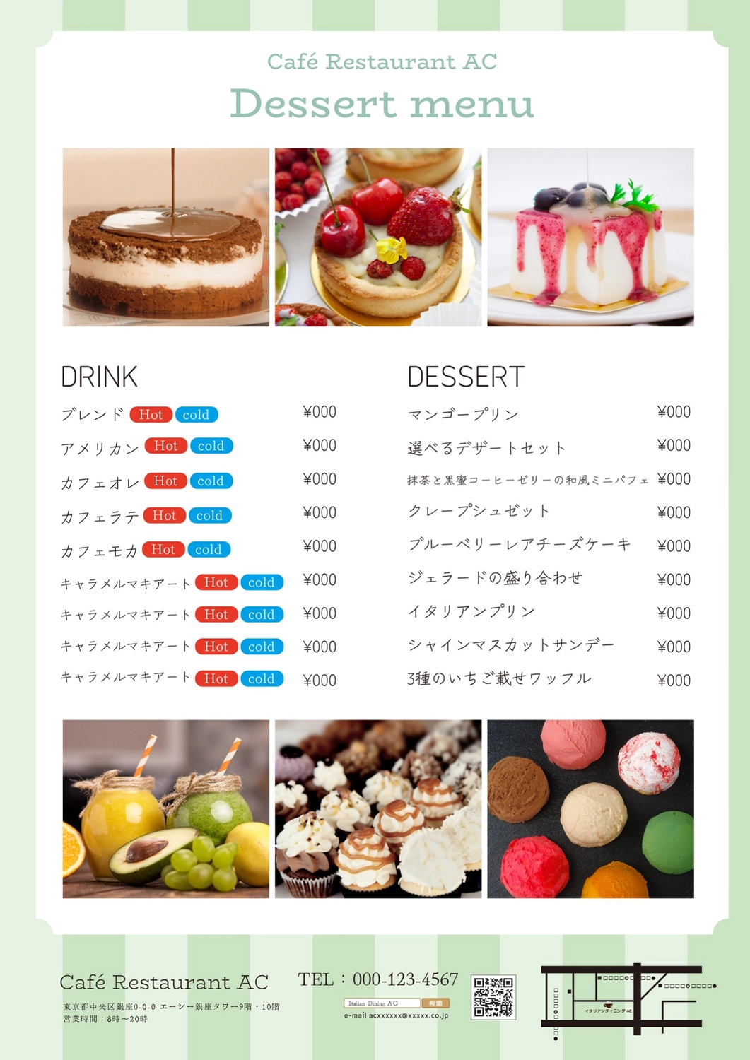 カフェメニューの無料メニューテンプレート 8310 - デザインAC。