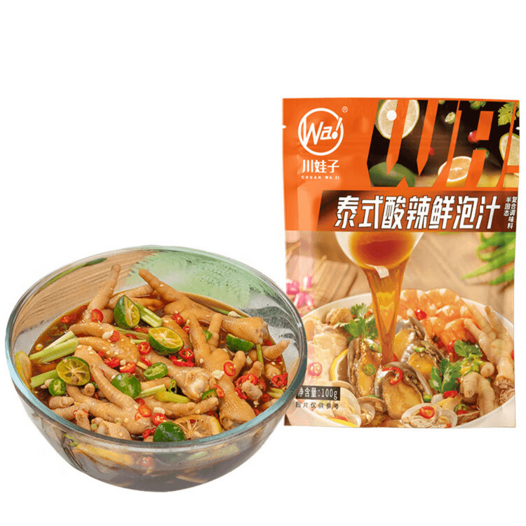 中国直送 チュアンワジ タイ風 ホット&サワー コールドピクルス チキンフィート シーズニング レモン 骨なしチキンフィート 100g - Yami。
