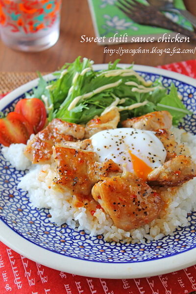 スイートチリソースで簡単!甘辛アジアンチキン丼☆温玉のせ : ぱおの簡単おうちごはん Powered by ライブドアブログ。