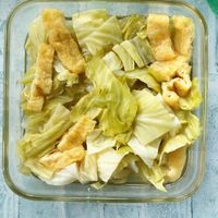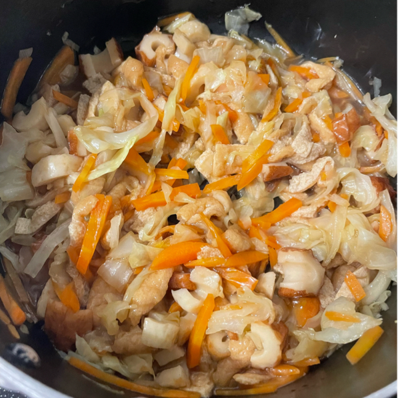 めんつゆで簡単! キャベツと油揚げのとろとろ煮。
