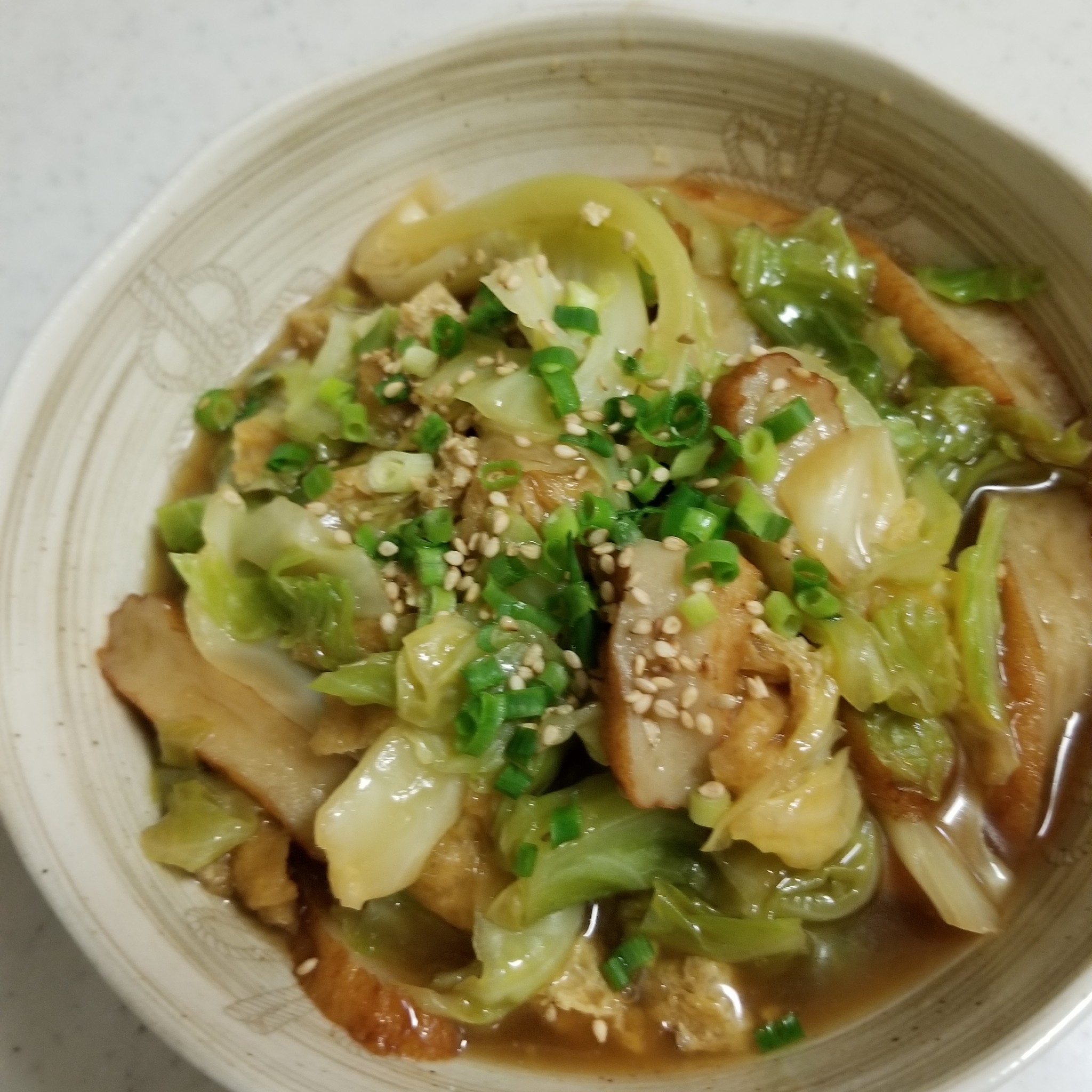 お手軽副菜♪ キャベツと油揚げのレンジ煮浸し。