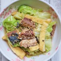 めんつゆで簡単!キャベツと油揚げの煮浸し。