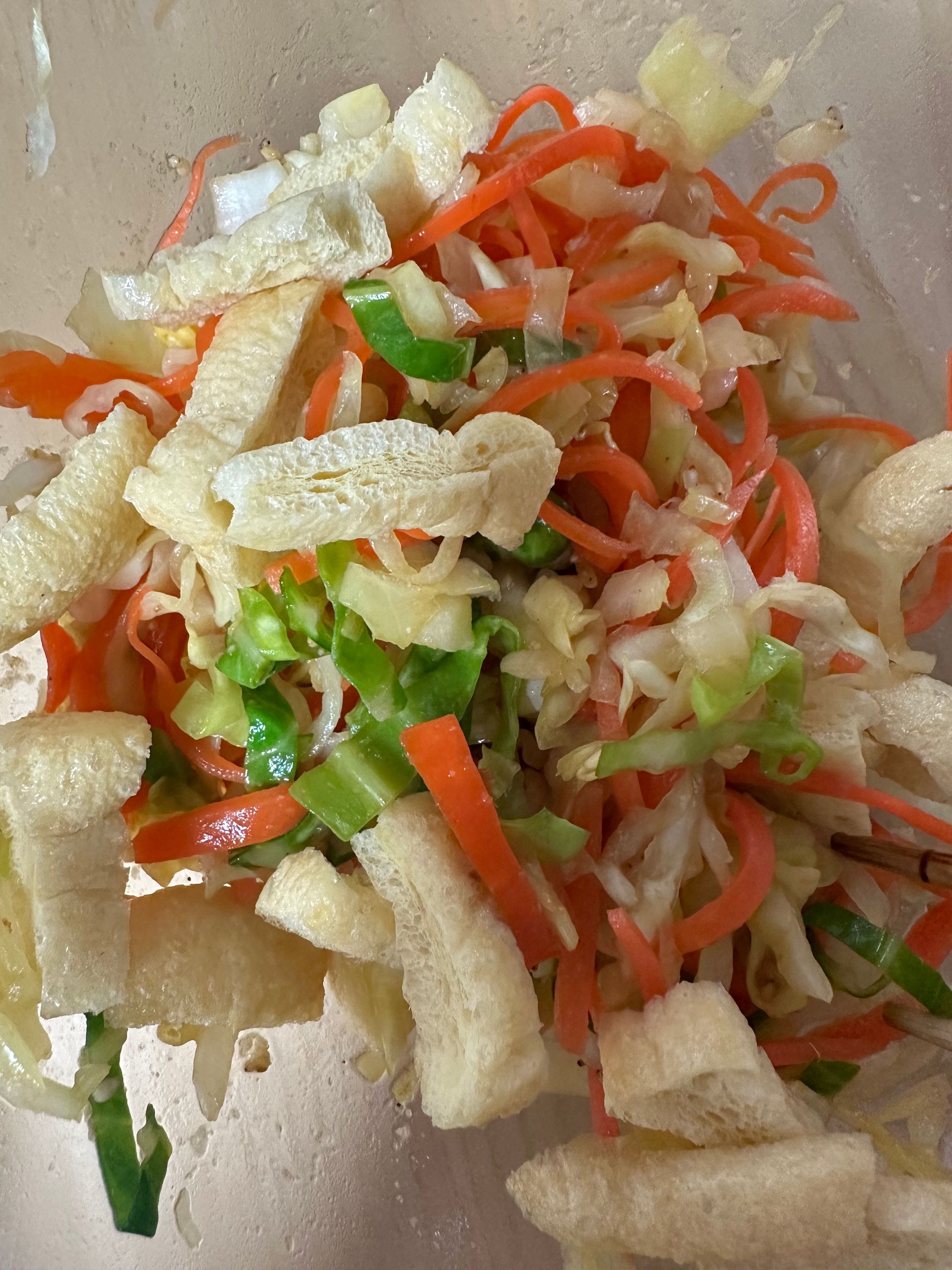 レンジでできる♪サクサク油揚げとキャベツのナムル風。