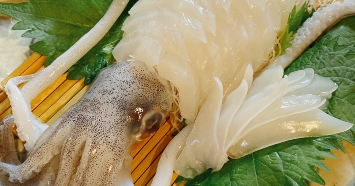 噛むほどに甘さが増す! アオリイカの刺身。