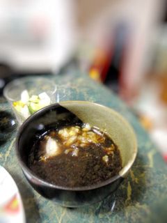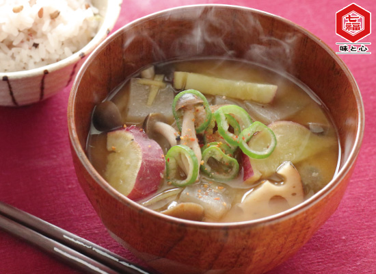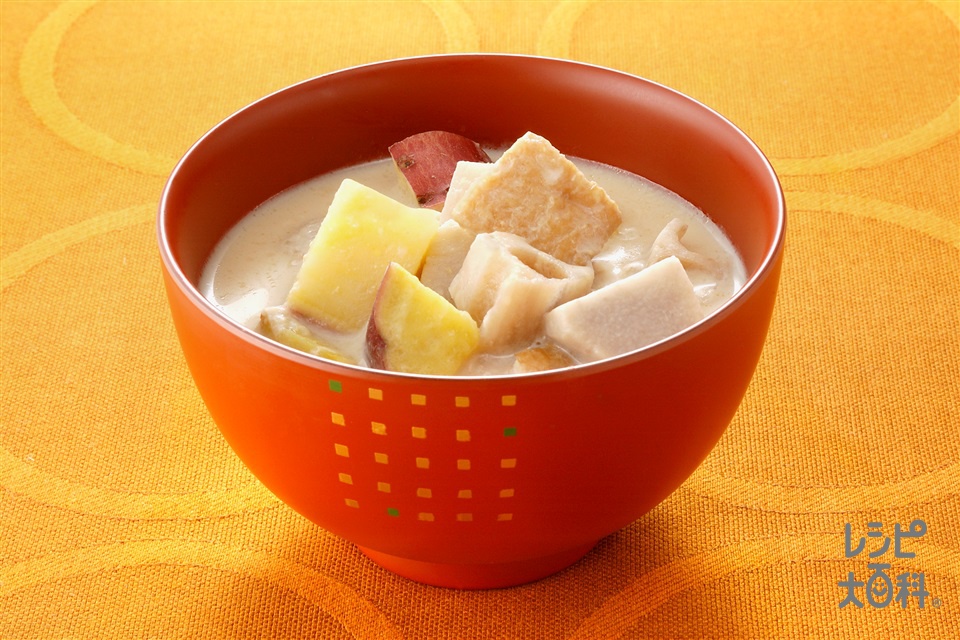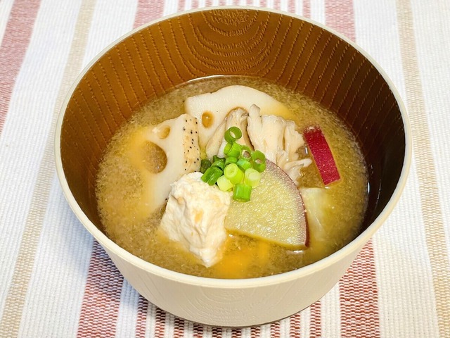さつまいもとれんこんの具だくさん豆乳みそ汁。