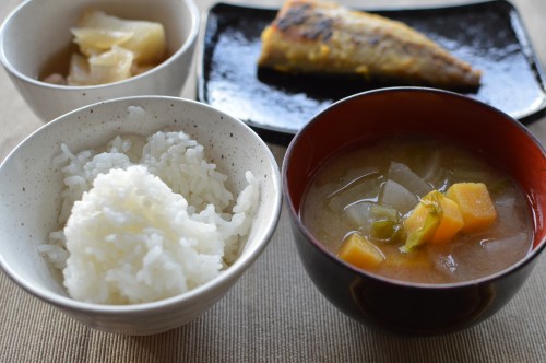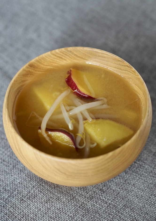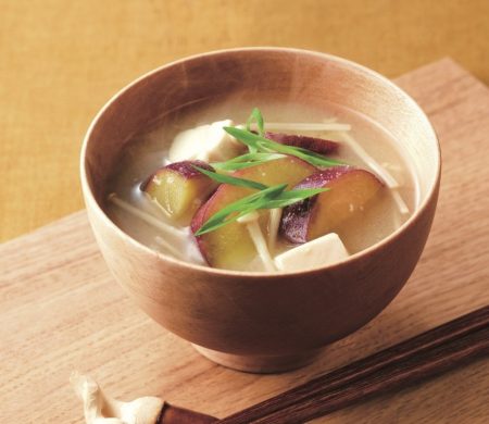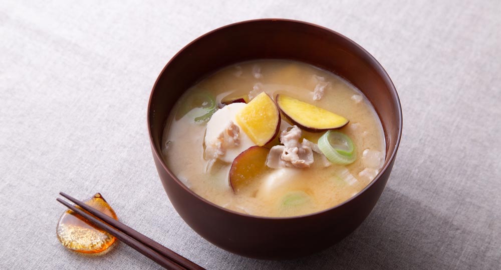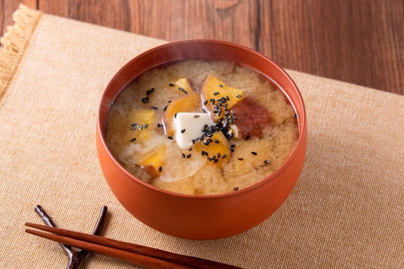 だしがなくてもおいしい、さつまいもとかぼちゃのみそ汁。