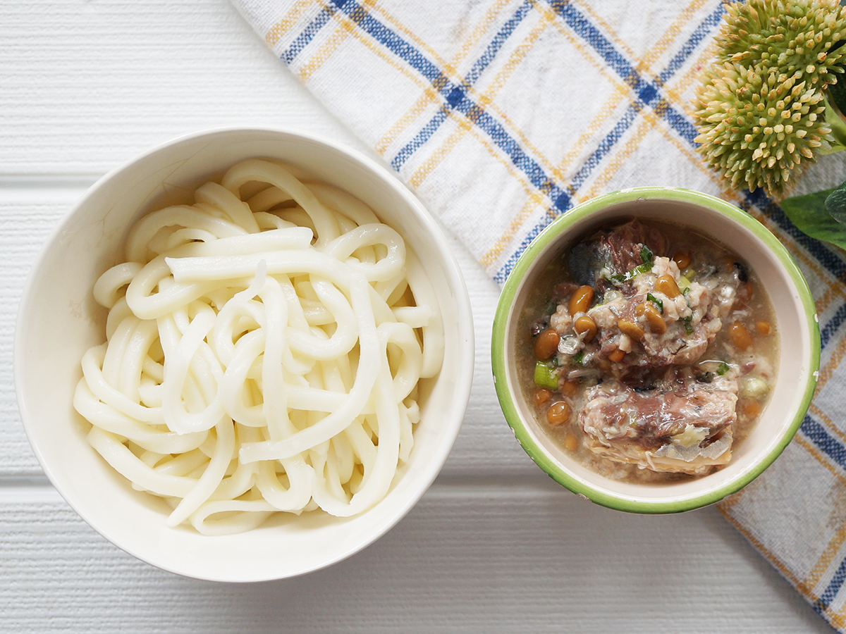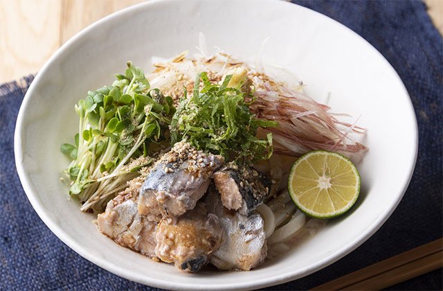 缶詰を使ってお手軽に! さば缶で冷やしつけうどん。