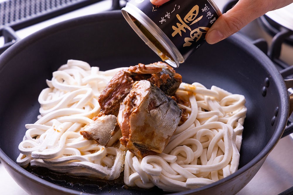 さば水煮缶を汁1滴残さず使う「サバ缶で焼きうどん」がとにかくウマい - メシ通ホットペッパーグルメ。