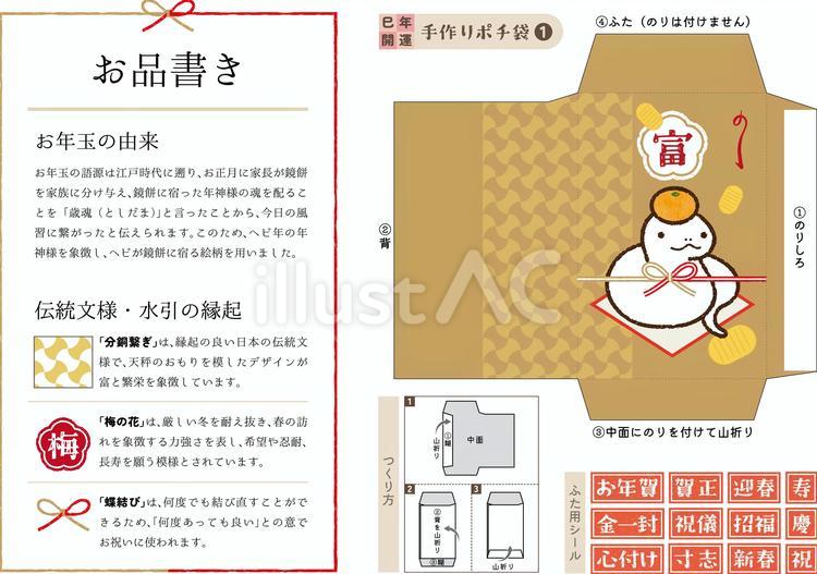 巳年の開運ポチ袋・展開図 1 黄イラスト - No: 25629700無料イラスト・フリー素材なら「イラストAC」。