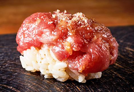 オイルと塩で食べる寿司「米菜°sakura織音寿し」。