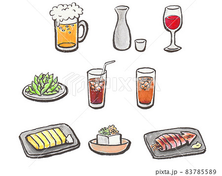 手描き飲食メニュー 居酒屋ドリンク+おつまみのイラスト素材83785589- PIXTA。