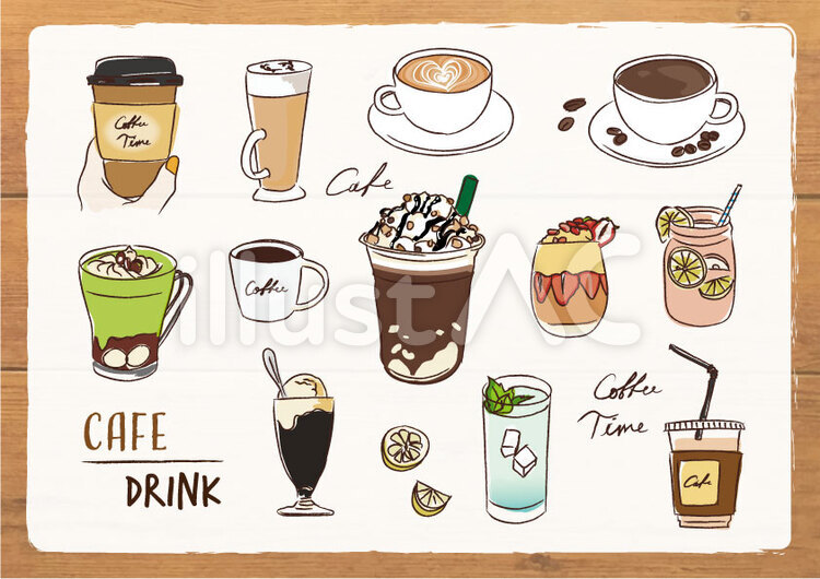 いろんな飲み物の手描きイラスト カラー のイラスト素材80575704- PIXTA。