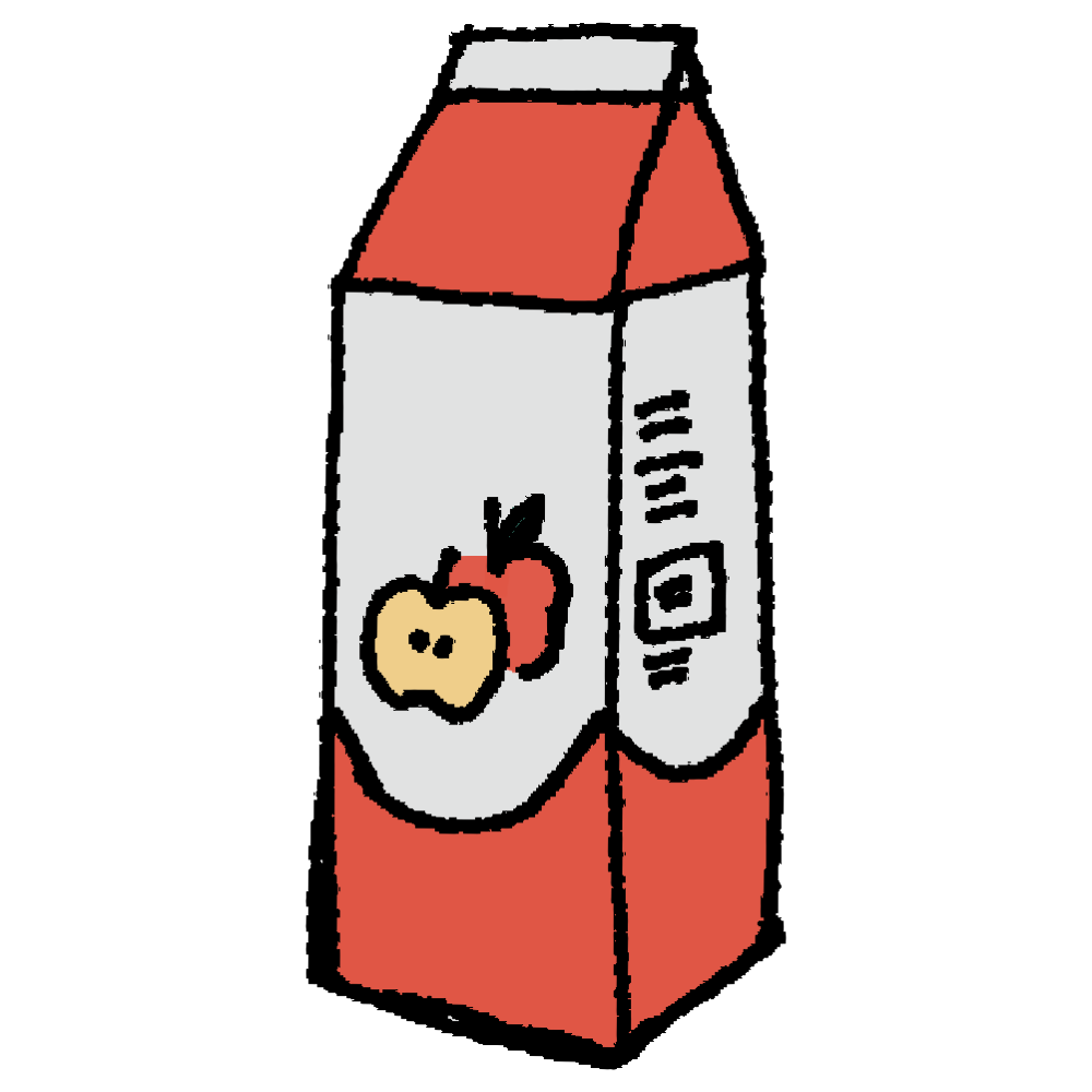 手書きで可愛いパックジュース『牛乳』のイラスト 透過PNG :イラスト無料。