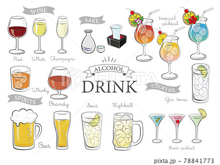 いろんなお酒、飲み物のポップな手描きイラスト147823815 毎月1点無料 フリー のストックフォト イメージマート。