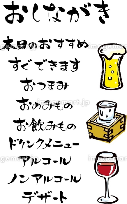 手書きの筆文字、居酒屋飲み物のメニュー文字素材245562412 毎月1点無料 フリー のストックフォト イメージマート。