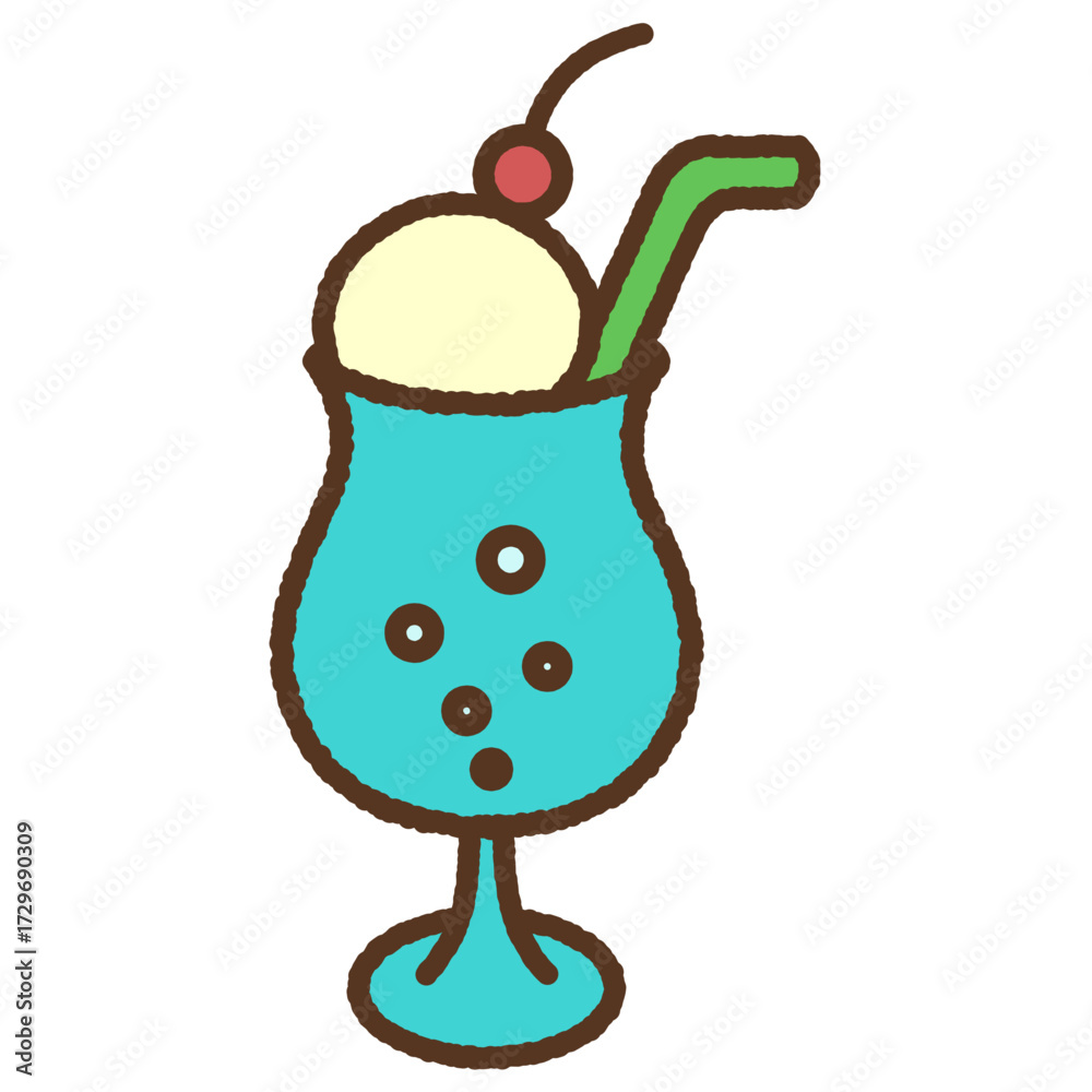 手書き風の単品アイコンイラスト 飲み物 クリームソーダ の Stock ベクターAdobe Stock。