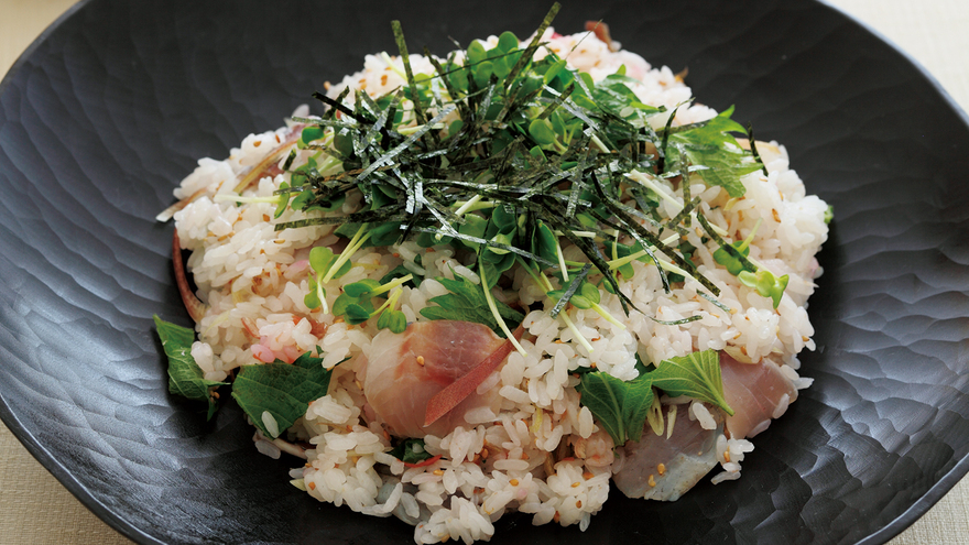 香味野菜と漬けまぐろの手こねずし。