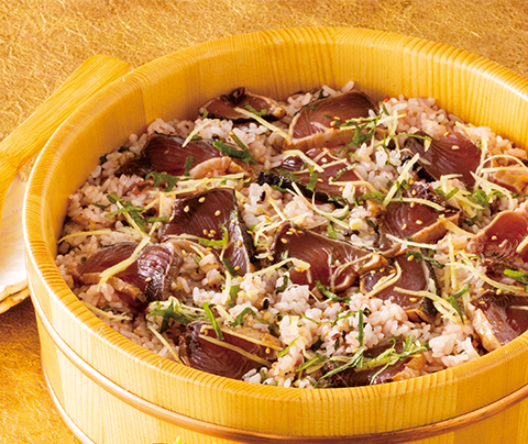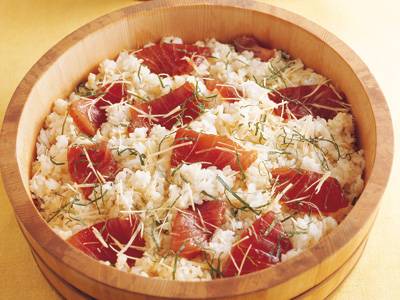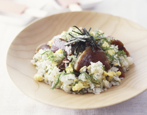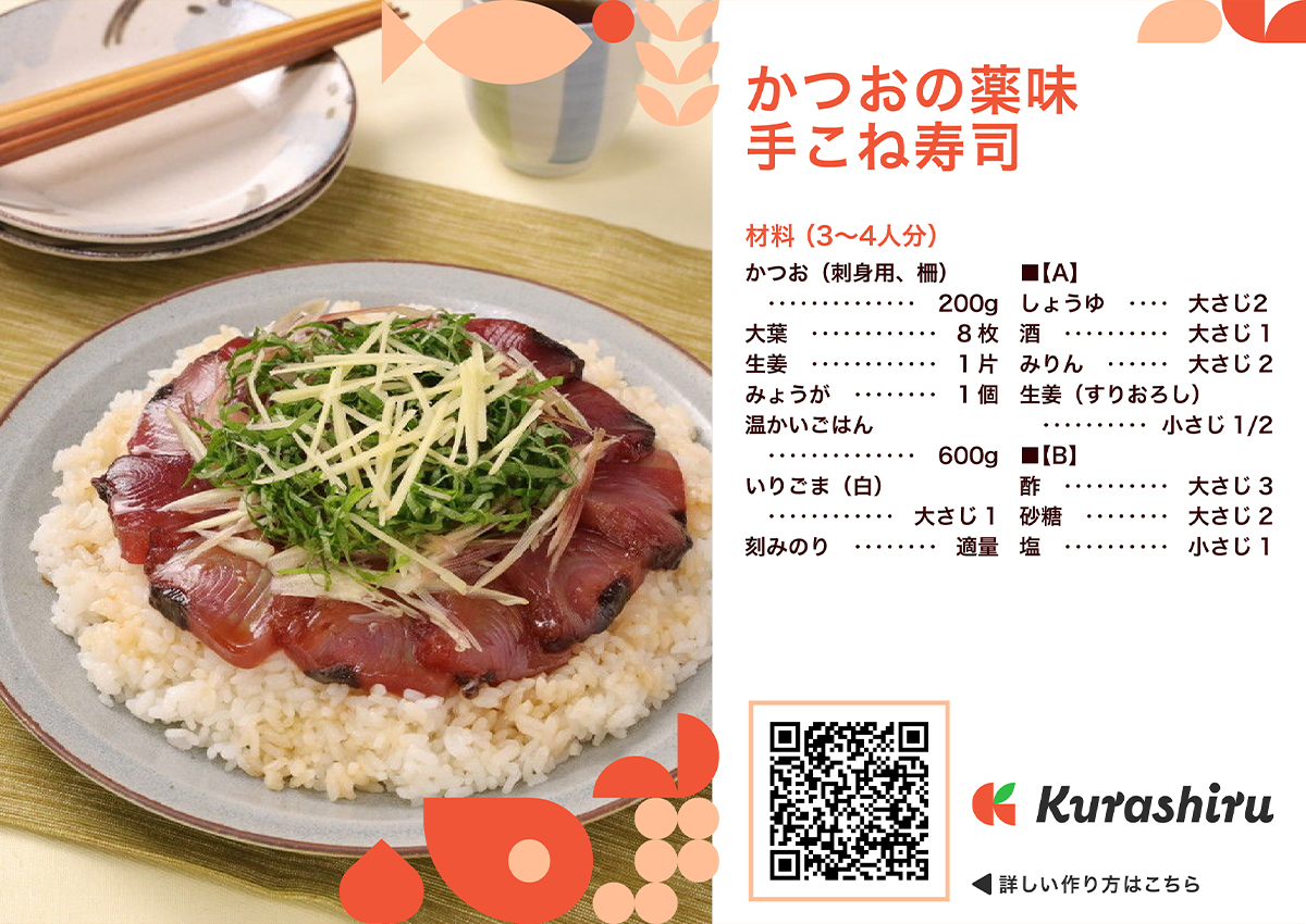 コモディイイダ歳時記レシピカツオの手こね寿司。