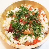 まぐろとサーモンの手こね寿司。