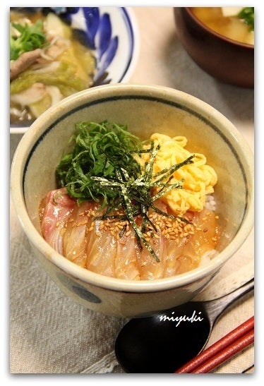 鯛の手こね寿司と小さなおかず3種miyukiのスマイルキッチン。