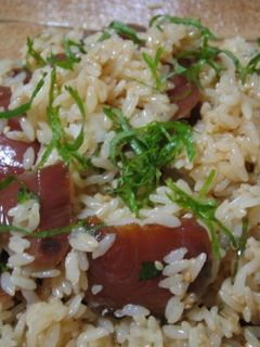 戻りがつおの手こねずし。