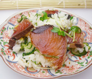 三重県郷土料理 かつおの手こね寿司。