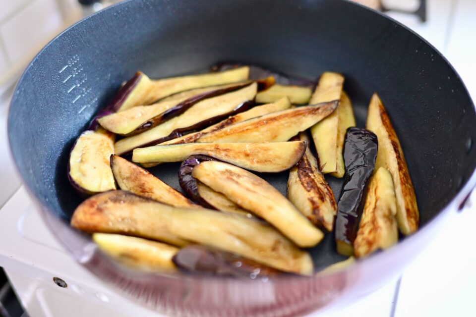 生姜醤油で美味しい“なすのしぎ焼き”。