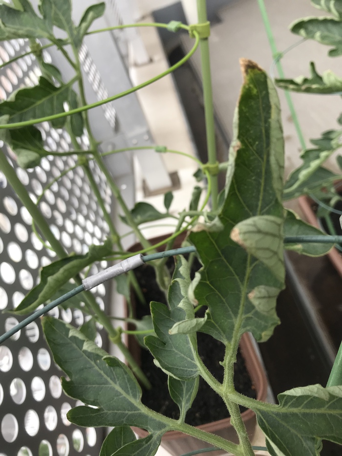 ミニトマトを育てていますが、下から徐々に葉が枯れて来ています。茎も上- Yahoo!知恵袋。