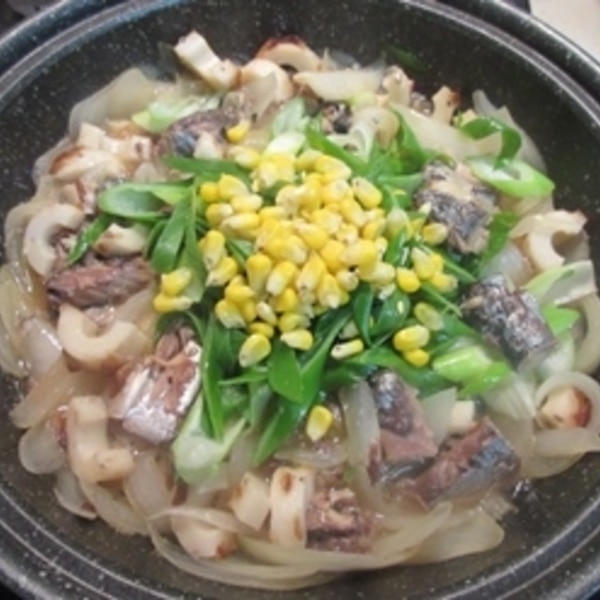 タジン鍋で作る♪鯖水煮缶と玉ねぎの煮物。