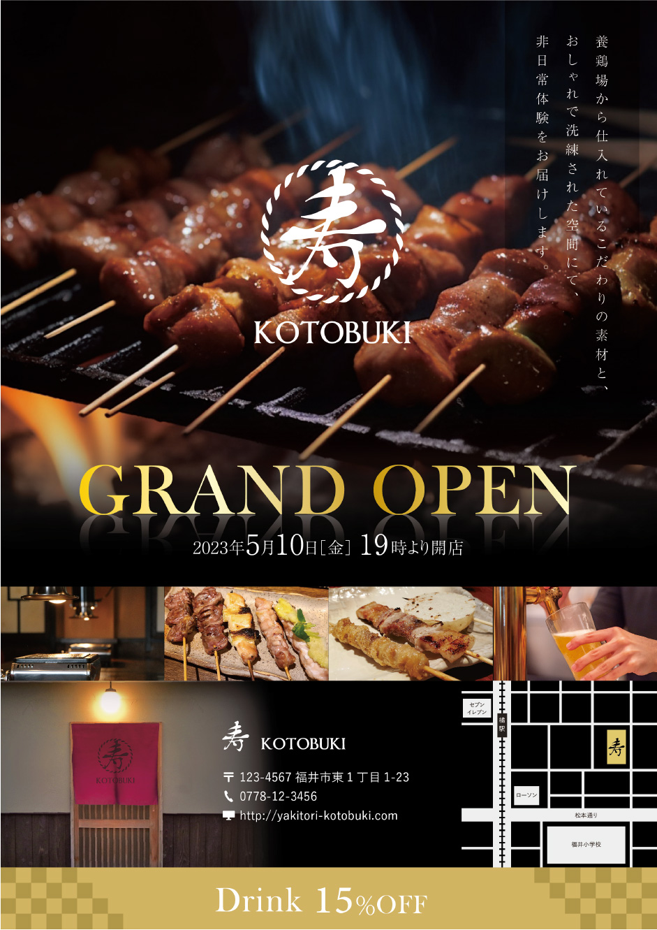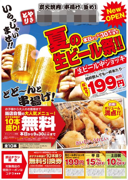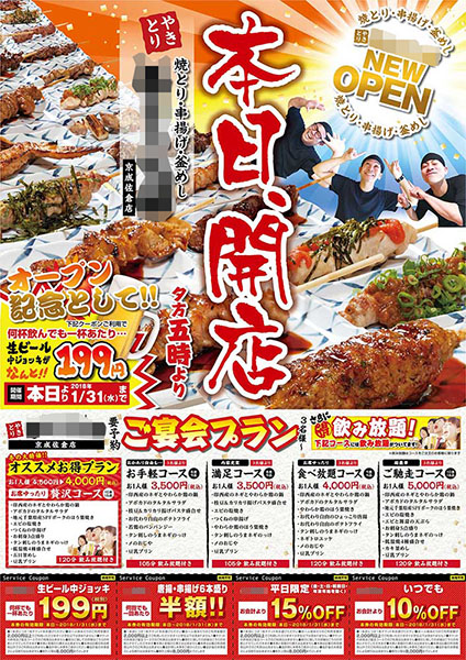 焼鳥店OPENチラシ飲食店のチラシデザイン作成・印刷なら飲食チラシ制作.com。