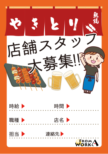 焼き鳥屋さん向け店舗スタッフ募集チラシ採用 サイヨウ .com。